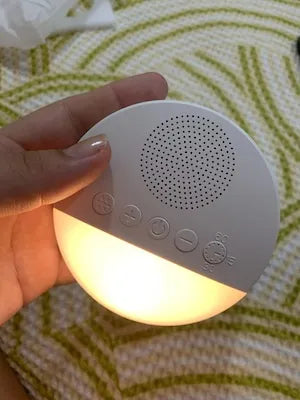 "OMG, this is a lifesaver! With 20 calming sounds and a gentle night light, it helps my baby drift off quickly. I love the portable size, making travel a breeze. Auto-off is a great feature, so I don’t have to worry about turning it off. Highly recommend!😊😊"